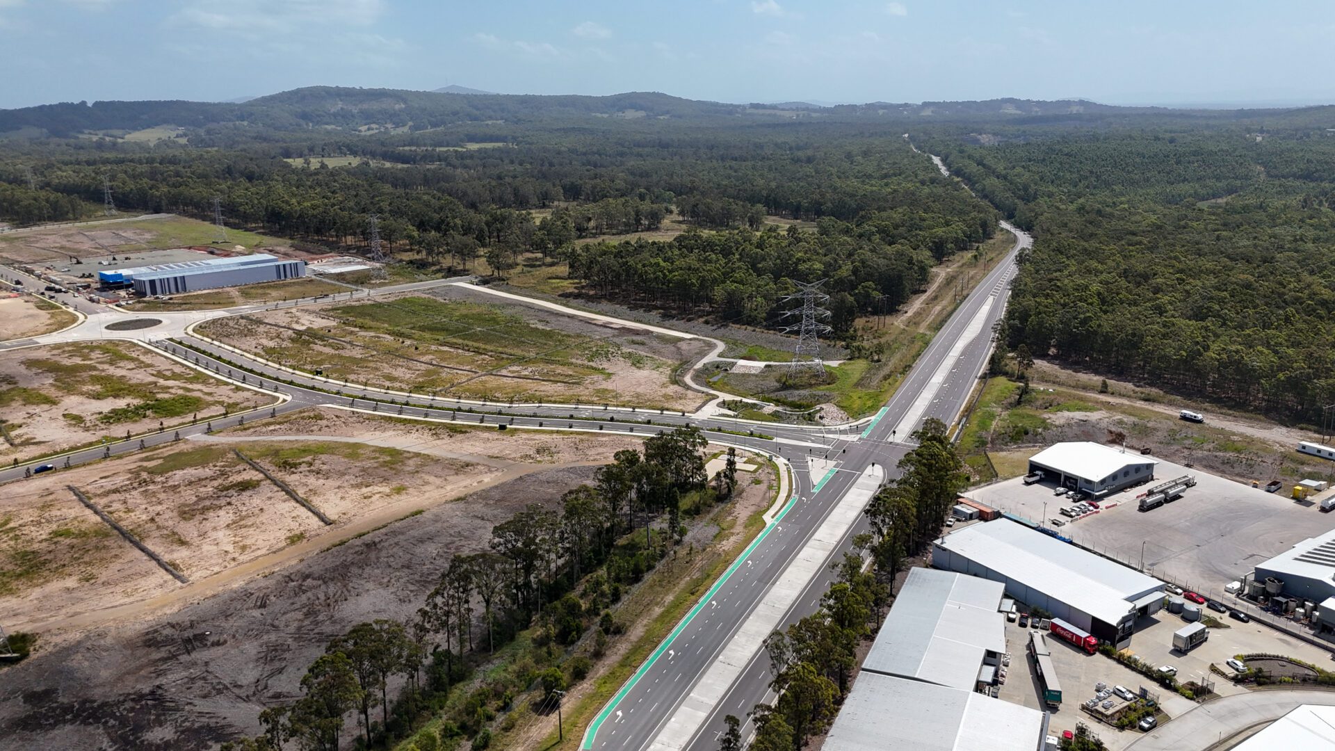 This project involved the duplication of John Renshaw Drive and Construction of a Signalled Intersection to the new Black Hill Industrial Estate.
